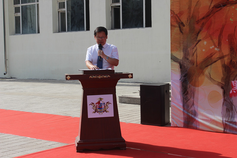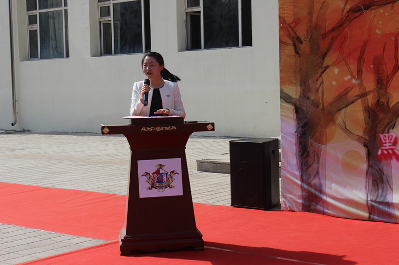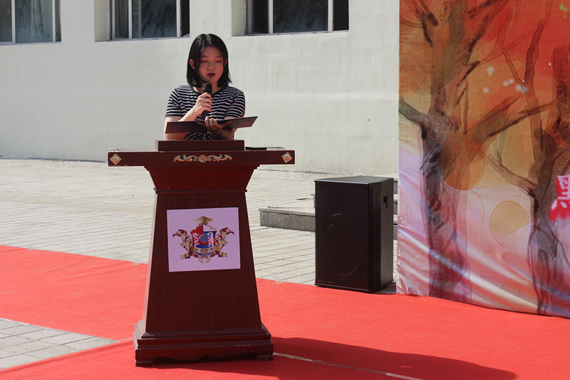 中方教师代表马丽萍讲话,她表达了对毕业生们的眷恋,祝愿他们在未来的生活中能够一帆风顺、前程似锦,并用一首饱含深情地诗歌结束了自己的发言。